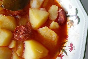 5 o 6 patatasuna cebollado o tres dientes de ajouna cucharadita de pimentón salchorizouna hoja de laurelaceite de oliva