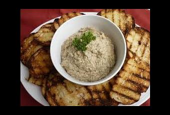 En un bol mezclar la pulpa de la berenjena, el queso, las nueces, el jamón, el ajo en polvo, sal y pimienta y tritúralo todo bien.
