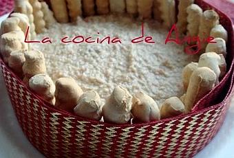 - Poner la mezcla en un aro de emplatar engrasado y con una cuchara desmoldarlo suavemente; ponerle alrededor unos palitos de pan como si fuese una charlota y sujetarlos con un lazo. Mejor hacerlo el día anterior. Estas cantidades son para 6 personas.