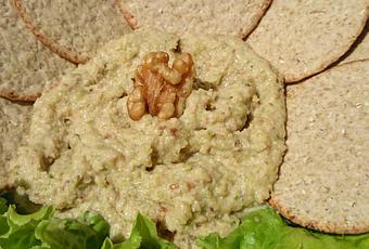 - Picamos el ajo y lo sofreímos con un poco de aceite. A continuación agregamos las nueces y salteamos unos dos minutos más. Añadimos el calabacín cortado en dados y seguimos salteando hasta que se ablande. Añadimos el pan rallado, la cebolla frita y salpimentamos. Trituramos todos los ingredientes y enfriamos antes de servir.