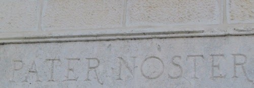 En el patio de la iglesia se tienen en las paredes, textos del Padre Nuestro en más de 100 idiomas.