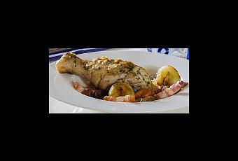 Para la guarnición limpiar 12 cebollitas francesas, manteniéndolas siempre enteras y se fríen en una sartén a fuego muy lento, dándoles de vez en cuando la vuelta para que se doren por todos los lados, agregar una tira de panceta cortada en trozos. Se tardará aproximadamente unos 20 minutos