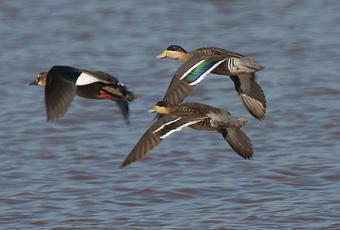 Comienzo con esta imagen de dos capuchinos y un cutirí en vuelo para que ustedes puedan comparar las diferencias del espejo alar.