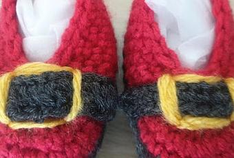 Despedimos este 2021 con estos bonitos patucos navideños, muy de Papá Noel, realizado en dos colores: rojo y gris marengo y un pequeño remate en amarillo para simular la ebilla. Son tiempos difíciles por la variante Omicron, pero saldremos adelante como todo este tiempo.