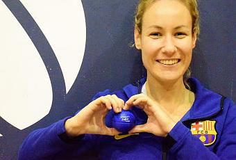 Paula Curto con una pelota muy especial: "Bàsquet, t'estimo". Foto: Toni Delgado / Cronómetro de Récords.