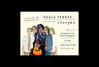 El 29/9 en Contraclub podremos disfrutar de la presentación del disco de Paula Ferraz con una gran banda.Paula Ferraz nos presentará las canciones de Changes en la intimidad de Contraclub.