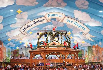 La carpa de Paulaner, conocida como “Winzerer Fähndl”, es uno de los lugares más apreciados dentro del Oktoberfest. Su emblema, reconocible desde lejos: una brillante torre amarilla con una enorme jarra de cerveza en lo alto, está presente desde hace más de 100 años. Con una capacidad teórica estimada de 42,300 litros, esta jarra gira majestuosamente por encima del Biergarten de Paulaner, considerado el más hermoso de todo el Oktoberfest de Múnich.