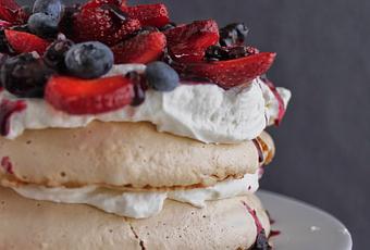 La tarta Pavlova es una tarta elaborada a partir de merengue horneado, nata montada y deocorada con frutas frescas acompañado de frutos secos u otro adorno. Australianos y neozelandeses se disputan el origen de la tarta. Más allá de polémicas deciros que hace honor al nombre que la inspiro la bailarina Anna Pavlova, es bella, ligera y de una suavidad que llama la atención.