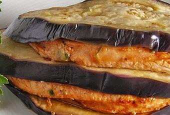 - Servimos acompañados de las berenjenas espolvoreadas con el comino bien molido y regadas con el jugo que han soltado los filetes de pavo.