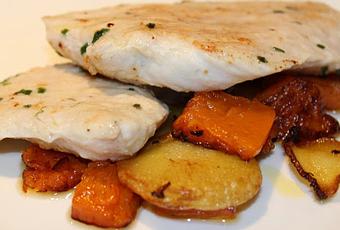 PAVO CON CALABAZA Y CHIRIVÍA CON MANTEQUILLA DE CEBOLLINO