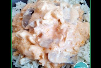 - Agregar el pavo, la sal, los champiñones y programar 6 minutos, Temperatura Varoma, Giro a la izquierda, Velocidad cuchara.
