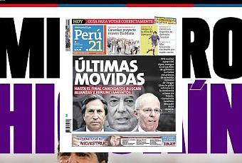 A escasas horas de cumplir nuevamente con nuestro voto ciudadano (muy a pesar de muchos), las cosas están de color de hormiga para algunos candidatos, y Perú 21 tiene un informe bastante revelador sobre los dimes y diretes correspondientes: Faltan 24 horas para el ‘Día D’ y la cuenta regresiva así como las encuestas –que se conocen, aunque no se puedan difundir– han puesto nerviosos a algunos partidos y los han empujado a intentar, desesperadamente, formar alianzas de último momento que les permitan ganar votos y enfrentar a las dos opciones que estarían liderando: Keiko Fujimori y Ollanta Humala.VARGAS LLOSA. El difícil trance que atraviesa Alejandro Toledo lo ha llevado a recurrir a Mario Vargas Llosa, quien –según fuentes confiables– se habría reunido hace unos días con Luis Castañeda para pedirle que dé un paso al costado a favor del expresidente. Ayer, Pedro Pablo Kuczynski reveló que el Nobel le envió a tres emisarios para solicitarle lo mismo.“Vargas Llosa está promoviendo eso (los acercamientos)”, reconoce un dirigente de PP. Otro asegura que la iniciativa no fue de su líder sino del propio escritor. Sea como fuere, el principal interesado es el propio Toledo, a quien haber mirado por encima del hombro a sus rivales parece estar pasándole la factura.¿Cómo reaccionó PPK ante esta solicitud? “Yo les dije que su argumento es falso. Yo tengo más chance de ganarle a Humala”, explicó en Primera noticia. Más tarde, en Radio Capital, fue más enfático. “Que me pidan a mí, el único de los tres que está subiendo, que me retire, me parece indecente”, comentó.Toledo dijo ayer que luego del portazo que le dieron Castañeda y Kuczynski ya no insistirá en pedirles un diálogo. Sin embargo, un alto dirigente ‘chakano’ afirmó, por la tarde, que se seguía buscando al menos reunirse con ambos. Al cierre, parecía difícil alcanzar ese objetivo.CITA CON EL APRA. La preocupación de los ‘chakanos’ los llevó también a buscar al Apra. Según fuentes de Perú.21, se pactó una reunión para la tarde del jueves en casa del empresario Samuel Dyer, en la que Carlos Bruce, Javier Reátegui y Marcial Ayaipoma dialogarían con Mauricio Mulder, Mercedes Cabanillas y Omar Quesada. La cita, empero, se frustró. Las fuentes afirman que a los apristas les irritó que, al mediodía, tras su reunión con la CTP, Toledo apareciera como el salvador que convocaba a las fuerzas democráticas. Al día siguiente, Jorge del Castillo anunció que los apristas respaldarían a Pedro Pablo Kuczynski.DIVISIÓN. El respaldo aprista a PPK también fue motivo de tensión dentro del oficialismo pues un par de horas después de que Del Castillo lo anunciara, Javier Velásquez, presidente de la Dirección Política, lo desautorizó. “No hemos sido consultados. Esa decisión sirve para Lima pero no para las provincias”, dijo.Dirigentes apristas consultados explicaron que el acuerdo de respaldar o a Kuczynski o a Toledo se adoptó el miércoles, en casa de Mulder, y que Velásquez, aunque disconforme, estaba al tanto. Del Castillo explicó que la noche del jueves, tras ver el mitin de PPK, consultó con la dirigencia y todos coincidieron en que era la alternativa a respaldar. “Yo no entiendo por qué dice ahora eso”, afirmó.