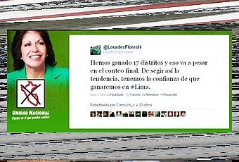 La encuestadora Ipsos-Apoyo emitió nuevos resultados sobre las elecciones para la Alcaldía de Lima, esta vez bajo la modalidad de conteo rápido, que es más confiable que la boca de urna porque el margen de error solo sería de +-1%, por lo que se requería una diferencia de dos puntos para dar al ganador definitivo. Al 100%, la candidata de Fuerza Social (FS), Susana Villarán, sigue ocupando el primer lugar con 38.4%, bajando 0.1%, mientras que la postulante del PPC-UN, Lourdes Flores se mantiene en 37.4%.