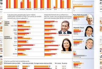 El registro de 40,7% del candidato de Gana Perú versus el 40,5% de Fujimori (intención de voto) pondría a cualquiera en la presidencia, aunque el IOP reconoce que en Lima la balanza se inclinó a favor de la segunda, que acoge a los votantes de Kuczynski y Castañeda.En cambio, el respaldo a Humala es mayoritario en provincias, especialmente en el centro y sur, donde dobla la cifra obtenida por su rival.“La gran batalla se dará en Lima, pues en las regiones el panorama se mantiene similar a la primera vuelta. Por su peso electoral, Lima fue decisivo el 2006 y probablemente decida esta elección. Ello puede generar una falta de canalización de las demandas regionales”, advierte Sandro Macassi, director de proyectos del IOP. En votos válidos la diferencia es similar: Ollanta 50,1% y Keiko 49,9%Muchos indecisosLa encuesta del instituto dirigido por Fernando Tuesta también muestra que el sector A-B apoya a Fujimori, mientras que en el C y D/E la disputa es sostenida.“Existe una polarización en estos últimos segmentos. Mientras Humala pone más énfasis en lo social, el fujimorismo ha tendido redes históricas de asistencialismo en organizaciones populares”, sostiene Maccasi.La muestra además pone en evidencia la alta cifra de indecisos (18% con la suma de blancos y viciados). Según el analista, la cifra se explica por la polarización y que la mayoría esperará al debate para tomar partido.