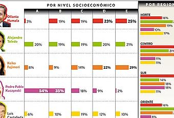 También demostraría, agrega, que PPK ya no tiene techo para seguir creciendo porque no tiene llegada a los sectores D y E. Keiko, en tanto, tiene poco en los sectores A y B, y mucho en D y E.