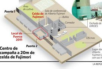 Pero el local de Fuerza 2011 ubicado al lado de la puerta del Establecimiento Penal Barbadillo, donde está recluido Alberto Fujimori, no es un local cualquiera. Por su actividad, fácilmente puede ser visto como el principal centro de aprovisionamiento y distribución de material propagandístico del fujimorismo para esta segunda vuelta.