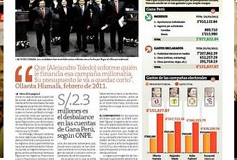 LLUVIA DE MILLONES. De acuerdo con la información proporcionada a la Oficina Nacional de Procesos Electorales (ONPE) por el equipo de campaña de Gana Perú, los aportes recibidos –entre congresistas nacionalistas, personas naturales y jurídicas– suman S/.5’877,822.
