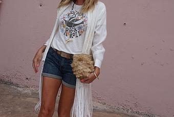 Buenos días Princes ¡¡Rock and roll , genero musical de ritmo marcado , derivado de una mezcla de diversos géneros de música, ( WikipediA ) una definición muy acertada para mi NoUni de hoy. Ya que hay una mezcla de géneros , que me encanta . Mi primera intención fue combinar este kimono ( ídem a un mantón de manila ) con un top lencero en blanco , que queda totalmente ideal. pero decisiones del ultimo momento , me lo vi con esta cami con un rollito muy vintage , y la verdad que me encanta como queda. Con shorts , una de mis piezas mas queridas, y queda ya tan poco para poder ponértelos que me siento muy muy triste. Os echare mucho de menos shorts vaqueros queridos ¡¡Me gusta mucho el resultado, de una cami de lino muy envejecida ( es nueva pero tiene ese efecto ) , un kimono muy muy clásico , unos shorts , esta vez sin rotos , un clutch de paja, unas sandalias/mules muy pijas y como no , mis collares, tobilleras, anillos y pulseras que literalmente no puedo salir sin ellas/ellos. Espero que os guste tanto como a mi , y siento mucho el súper retraso ¡¡ Feliz jueves pAZ ✌Besotes ...XXX