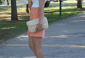 No sé a vosotras, pero a mí con el calor me cuesta mucho arreglarme, busco prendas frescas y sencillas sin muchos accesorios, que me permitan estar cómoda. Por eso para ocasiones especiales recurro a faldas como éstas que visten por sí solas. Me enamoró por su color, un tono melocotón precioso para el verano. La hubiera combinado con mi opción favorita, el crop top, pero ésta vez decidí buscar en el armario y recuperar este corsé blanco de hace años, el resultado no me disgustó. Espero que os guste! Mil besos y muchas gracias por seguir ahí ♥