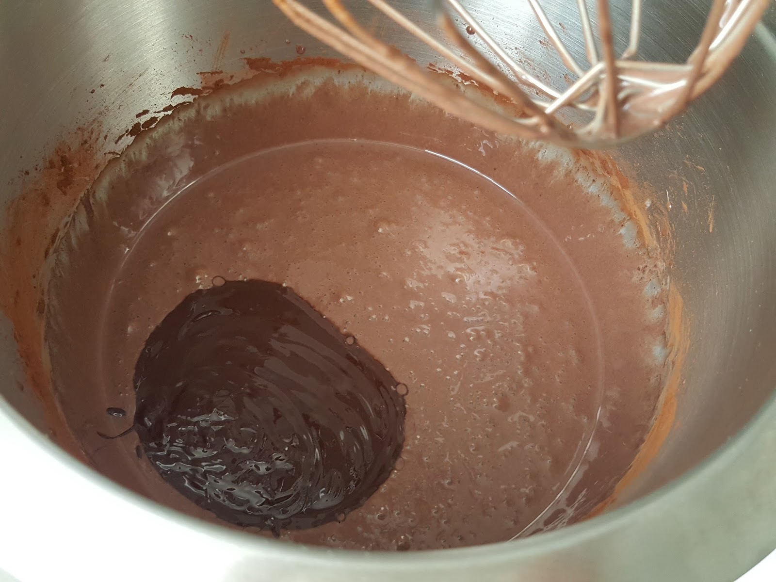 3. - Añadimos el chocolate derretido y mezclamos bien.