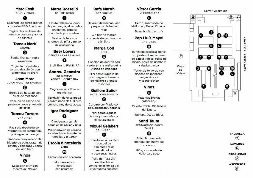 Todos los tenderetes estaban repletos de gente esperando para degustar las magníficas tapas que habían preparado los cocineros. Como fue el caso del stand de Marta Rosselló, del restaurante Sal de Cocó y exalumna de la EHIB. Marta preparó una "Flauta rellena de lomo de porc negre, alcachofas crujientes, cebolla confitada y dos salsas" y una "Terrina de foie con chutney de piña y polvo de ensaimada".