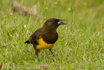 En horas de la tarde mientras estábamos transitando el camino para salir hacia la ruta nacional 12, giramos hacia la izquierda en un cruce y a los pocos metros divisamos a un numeroso grupo de estos ictéridos de bañado, aquí en Cambyretá los pastizales, juncales, matorrales, lagunas y bañados constituyen el ambiente ideal para que esta y otras especies mas encuentren las condiciones ideales para subsistir.