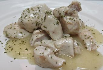 3.Se añade la copa de Jerez y el vaso de caldo de pollo y se pone a fuego lento durante 18 a 20 minutos. Apartar espolvorear de perejil y servir.