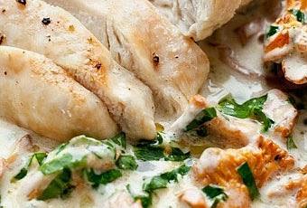 Pechuga de pollo de carne es muy ligero, este plato es recomendable para la cena. Acompañado con una salsa cremosa de champiñones y el perejil tiene un sabor más refinado perfecto para las noches en dos como el Día de San Valentín y más allá.