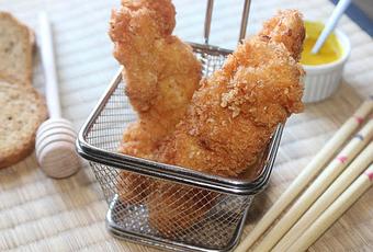 Salpimentamos las tiras de pechuga de pollo, las pasamos por harina-solo un poco y escurrir bien-, luego por huevo batido-mojarlas bien en el huevo, incluso dejarlas 1 minuto sumergida-, y finalmente por el panko-presionar bien para que quede todo el pollo impregnado de panko- y freír hasta que esté hecho el pollo y esté doratido....que rico, jeje.....