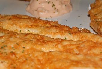 Las pechugas las fileteamos, les echamos sal, las pasamos por harina, después por el huevo y freimos.