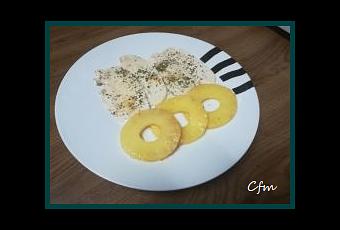La fruta es una parte esencial e nuestra alimentación y debe incluirse en el menú diario ya que nuestro cuerpo necesita las vitaminas y los minerales que estas le aportan. La piña es una de las más aconsejadas porque además de contener mucha fibra y pocas calorías, tiene enzimas como la bromelina, minerales como el manganeso, vitaminas como la C, A, B y ácido fólico, un alto porcentaje de agua y que ofrece muchas posibilidades, ya que puede combinarse tanto en platos dulces como salados.Hoy por ejemplo yo la he hecho con unas pechugas a la plancha con ajo y perejil...Vamos a ver como...