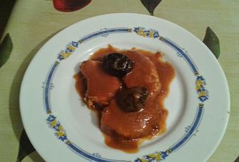 Volvemos a poner la salsa a cocer, se añaden los filetes de las pechugas de pollo y las ciruelas pasas y se deja cocer durante cinco minutos para que las ciruelas adquieran todo el sabor y ya está listo para comer. Este plato se puede realizar con antelación y calentarlo una vez que nuestros invitados estén sentados en la mesa.