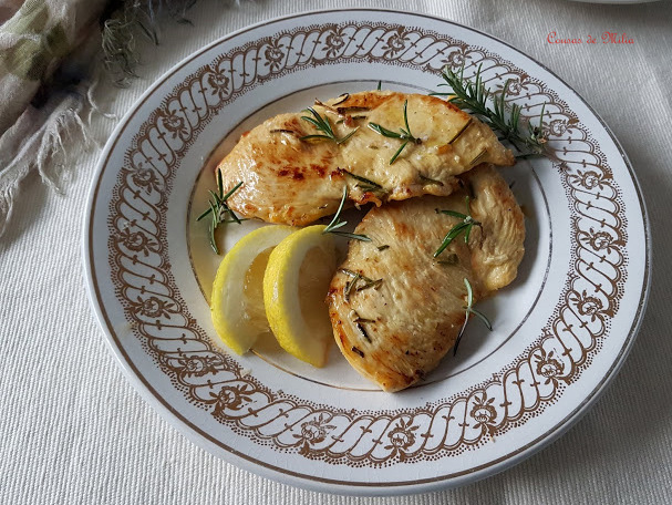 - En un bol donde nos quepan las pechugas, mezclamos, el romero, los ajos, la sal la pimienta y el zumo de limón.