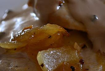 INGREDIENTES:2 Pechugas de pollo.1 Cebolla.1 Diente de ajo.Aceite de oliva.Sal.Pimienta negra molida.para la salsa a la pimienta:1 Bote de nata liquida.Mantequilla.Pimienta negra en grano.1 Cucharada de Bovril (concentrado de carne).