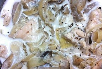 Mas tarde, poner los champiñones troceados y cocinar a fuego medio durante 4- 5 minutos. Añadir la nata y terminar de preparar con el fuego bajo.