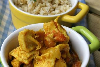 - En el mismo aceite sofríe el pollo.Cuando esté dorado, pon a fuego lento,tapa la sartén y deja 5 minutos a fuego lento.