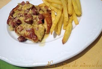 Dejamos hacerse las pechugas 10' en la salsa y servimos inmediatamente, poniendo la salsa por encima del pollo