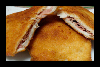 - Pasar las pechugas sin el papel film por harina, huevo batido, pan rallado (por este orden) y freír. Servir caliente para que el queso esté fundido.