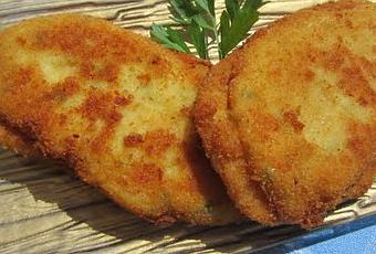 6- EXTENDER UN POCO DE LA BECHAMEL SOBRE CADA FILETE, DEJAR ENFRIAR, REBOZAR EN HUEVO Y PAN RALLADO Y FREÍR EN ABUNDANTE ACEITE DE OLIVA.