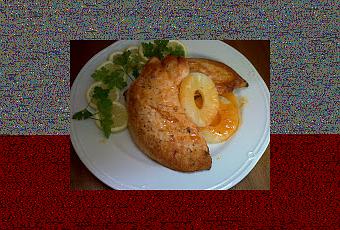 Preparacion:Rociar las pechugas con el jugo de limon y el vino blanco, salpimentar y reservar en la heladera durante 1 hora. Tapar el recipiente con papel aluminio y cocinar el pollo en el horno a temperatura media durante 20min. Retirar el papel; cubrir con la ralladura de limon y rociarlo con su propio jugo; gratinar durante 10min. Pelar cuidadosamente el anana y cortar en rodajas finas. Cocinarlas en una sarten, cubiertas con agua y edulcorante. Retirar y espolvorear con la albahaca picada. Servir el pollo sobre el anana y decorar con las ramitas de albahaca.