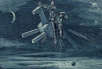 domador del corcel de cascos de diamante, voy en un gran volar, con la aurora por guía, adelante en el vasto azur, siempre adelante!