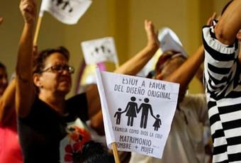 "Estamos a favor del diseño original. Matrimonio: hombre+mujer", es la pancarta que adorna la entrada en las sedes evangélica, pentecostal y metodista en La Habana. Periodistas de las provincias orientales de la Isla reportaron la aparición de carteles en los que se lee: "Proteja a su familia y a sus hijos. Diga no al homosexualismo".