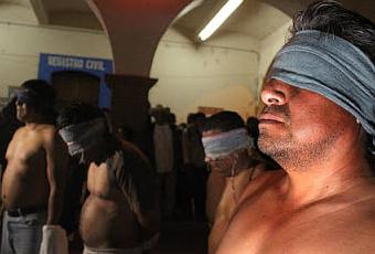 Tras un enfrentamiento entre maestros integrantes de la Sección 22 del SNTE y padres de familia, junto con otros inconformes, cinco mentores que fueron retenidos debido a la disputa por el control de dos escuelas en la comunidad de Villa de Mitla, en Oaxaca, son exhibidos semidesnudos y con vendas en los ojos frente al Palacio Municipal de la localidad.