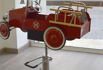 Los más peques alucinan subidos a una silla-coche de bomberos, para que estén bien entretenidos y se dejen cortar el pelo o peinar con total tranquilidad.