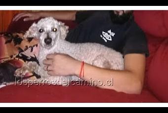 Pelusón es un perro poodle standar blanco, tremendo de regalón, con una manchita semicafé en el muslo izquierdo, en la imagen se ve claramente arriba del brazo, tiene 19 años, para tener la edad que tiene, aun es ágil para caminar, tiene una patita trasera como que se le dobla, algo cojea, no tiene nada de cola, se perdió en la comuna de PUENTE ALTO, Villa Tocornal.