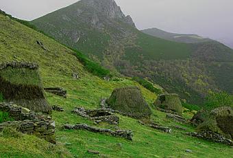 los teitos de la corra están en buen estadodesde la parte alta de la braña y tras pasar el último teito, parte un senderín que va en ascenso en dirección N. y desde el cual buscaremos la arista que nos acercará hasta peña negra, hay sendero pero cuesta seguirlo por estar entre el brezo