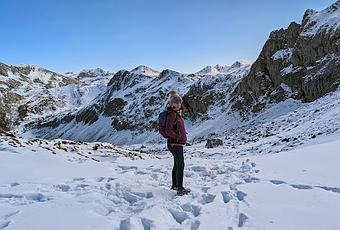 A partir de este punto la nieve, ya muy blanda, pasa a ser la auténtica protagonista del recorrido. Con algo más de esfuerzo progresamos hasta alcanzar la Bobia el Robezu (1.882 m), situada a los pies de la espectacular cumbre homónima, que se alza imponente sobre nosotros.