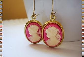Bonitos pendientes de tipo vintage realizados en dorado y camafeos rosas.