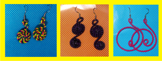 Partiendo de este punto podemos hacer las formas que queramos , nosotras hemos hecho unos pendientes y también nos atrevimos con un collar precioso. PASO 6 y 7 : Damos forma a nuestros pendientes enrollándolos sobre si mismos o enrollando cada unos de los dos extremos del alambre hacia direcciones diferentes, formando dos espirales,podemos hacerlo con las manos o ayudándonos con unos alicates de punta redonda, es importante hacer una especie de agujero o pestañita donde podamos meter el enganche del pendiente.