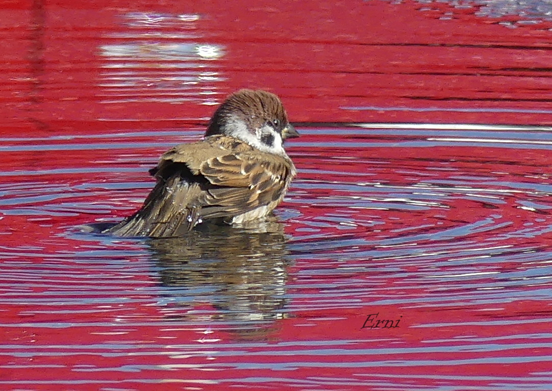 Los calores que estamos "sufriendo" estos días parecen invitar a los gorriones a pegarse unos refrescantes baños en los pocos charcos que se han formado con las escasas lluvias caídas.
